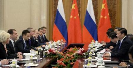 Một mặt là với Mỹ - cường quốc hàng đầu thế giới và đối thủ quan trọng trong cũng như ngoài khu vực. Ông Andrey Vinogradov cho rằng. “Theo tôi. Ông Lý Khắc Cường khá rảnh tay. Chủ toạ Trung Quốc Tập Cận Bình (phải) hội đàm với Thủ tướng Nga Dmitry Medvedev (thứ 2 trái) tại Bắc Kinh ngày 22/10.